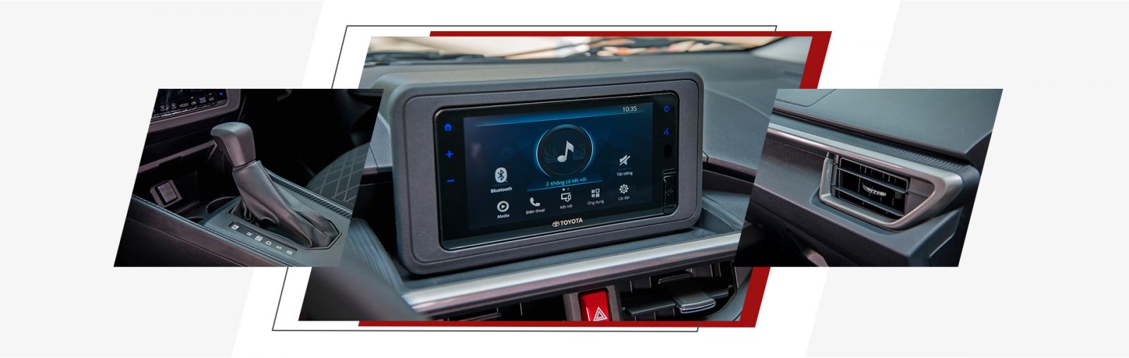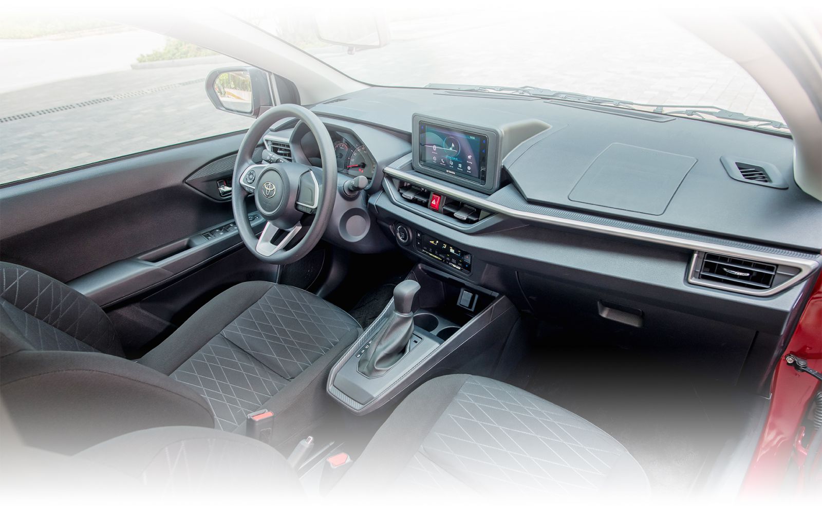 Trung tâm là màn hình giải trí cảm ứng 7 inch với kiểu sắp xếp đồ hoạ mới, tích hợp kết nối Apple CarPlay và Android Auto. Phía dưới là nút khởi động, đặt cạnh màn hình điều chỉnh chức năng điều hoà, thứ mà hai đối thủ chỉ là loại núm xoay chỉnh cơ. Các hàng ghế Wigo 2024 bọc nỉ trong khi đối thủ có sẵn bọc da. Trang bị ghế lái chỉnh điện vẫn chưa có mẫu xe nào trong phân khúc hạng A sở hữu.